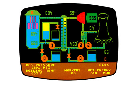 1980: Gaming luminary Chris Crawford starts molding a game out of a nuclear power plant simulator to illuminate and educate people concerning nuclear power safety. This game is entitled SCRAM, after the inaugural nuclear reactor 'safe-word' coined at the University of Chicago in 1942. It stands for "Start Cutting Right Away, Man" and refers to cutting a reactor's control rods loose, halting the nuclear reaction process. Crawford's SCRAM recreates the Three Mile Island Unit 2 nuclear reactor, and even allows you to put into action the events that took place there in 1979.